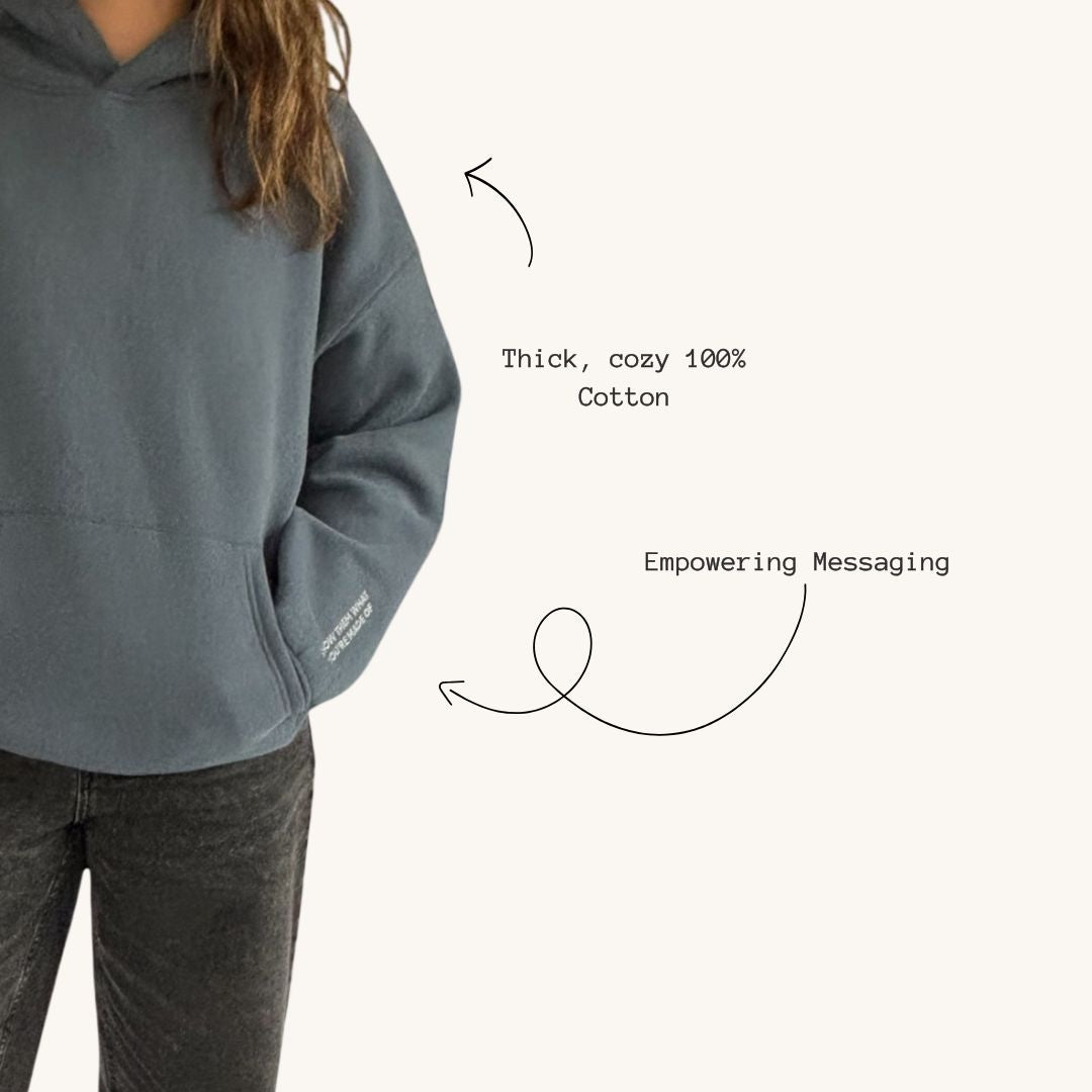 Created for you, the Confidence Hoodie blends soft, breathable 100% cotton with a relaxed drop-shoulder fit and extra-long sleeves for athletic builds. Subtle branding and an empowering wrist message complete the look.